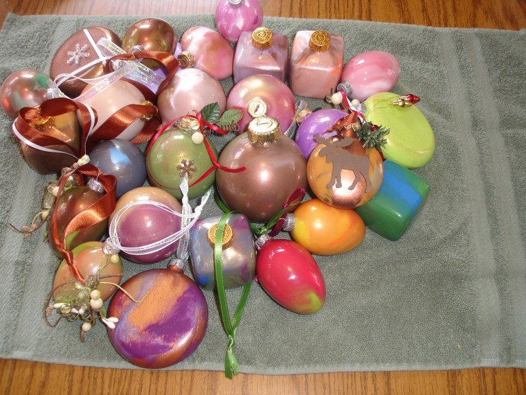 There are the ornaments my friends and I made last weekend