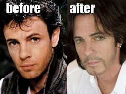 I actually think he looks better in the “now” photo, but maybe it’s that whole eighties thing that seems a bit…well, over the top.