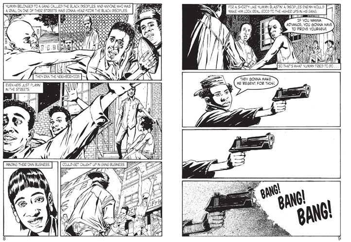 I am not a big reader of graphic novels, but occasionally one will catch my eye, much like this one did.  Based on the true story of Robert “Yummy’s” life, this story is told with a fictional character Roger, who tells the story through his eyes of how Yummy became initiated into a gang called the Black Disciples, how we killed a girl, and how eventually he was killed as well.