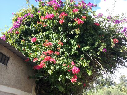 Do people often hang flowers on the edge of their roofs (picture 4) or is a tree planted that close to the house that it makes it look like they’re growing there?