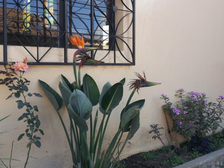 Bird of Paradise against a building
