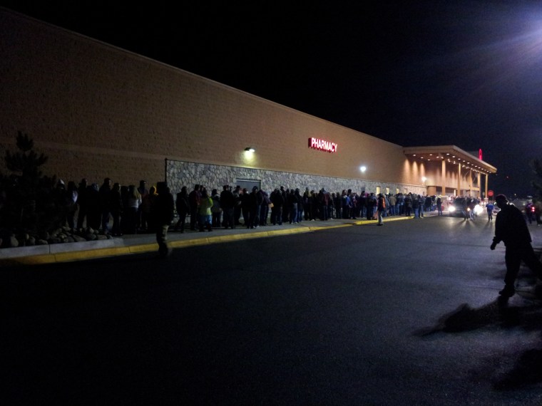 Target at 11:30 pm last night. We were in line around the corner from the front side of the building.