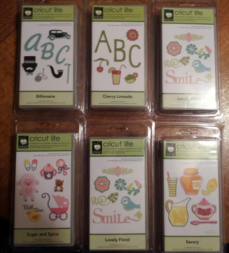 The cartridges I picked up for the Cricut.... which... needs a name......