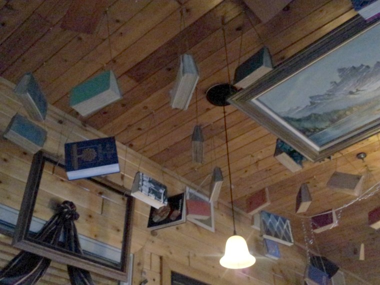 I love the books hanging from the ceiling. I see an encyclopedia we used to have for our kids. I have no idea where those books ended up, lol.