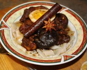 Cheryl: I have so many recipes I adore — it’s like asking a mother to pick her favorite child! One of my favorite dishes is this dish called tau yew bak, which basically means soy sauce meat. My late grandmother used to make this with pork belly or duck and it’s basically meat braised for hours in a stew of dark soy sauce (which has the consistency of molasses and is rather sweet), cinnamon sticks, star anise, sugar and garlic. (I have a recipe for the duck version of this in the book.) My family also adds cubed tofu and hard-boiled eggs to this stew — you want to cook it long enough so that the tofu cubes are saturated with the gravy and the eggs are the color of milk chocolate. Now that I know how to make it, it is part of my regular rotation in New York — I don’t often make it with duck, though. (Putting my hand in the cavity of a duck is still not one of my favorite things.) I’ll do it with cubed pork loin, ground beef or pork and cubed tofu. People often think Southeast Asian cooking is daunting because the recipes sometimes have many steps and ingredients — I like to look at the recipe, try to understand the flavors of the dish, why they work together and figure out how I can simplify it for an easy weeknight meal. That’s what I’ve done with my grandmother’s tau yew bak.