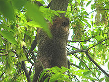At this point, I determine it is a beaver. There is some wetland near the bike trail in parts and I was near that now. In fact as a couple of rollerbladers passed by while I was taking pictures I pointed out the beaver in the tree. They were not as impressed as I was, they smiled politely and kept on blading.