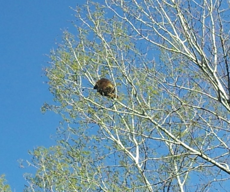 It was kind of cool, his little paw would reach out for some of the leaves and I watched him for about ten minutes. He started to climb down and I thought I would video that but he sensed my presence and FROZE and finally I waved him good-bye and good luck getting out of the tree, and moved on.