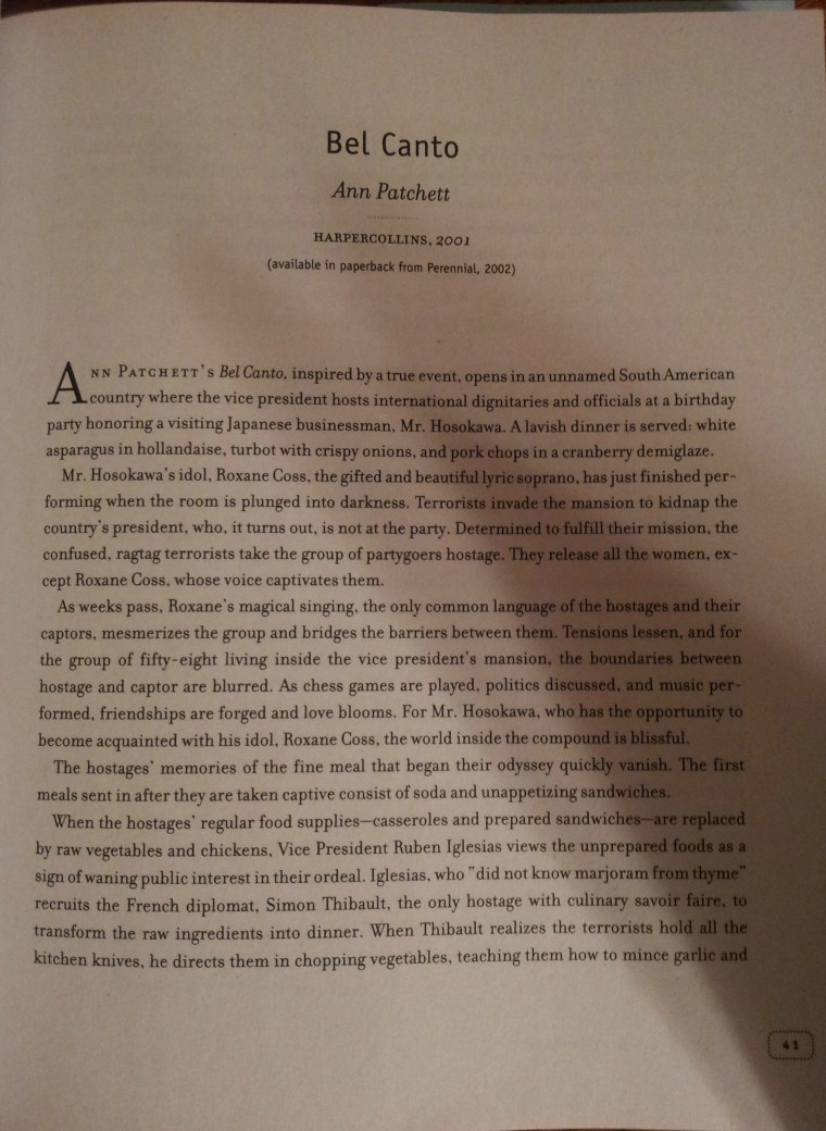 And of course I loved it! Each book gives a full page synopsis as well as publishing information, followed by food that would go well with the book, sometimes by the author, and always ideas from a book club as well. If anything, this book is dangerous as I drank in all the books I have yet to read and delicious food to go with them. The ideas were already forming in my mind….